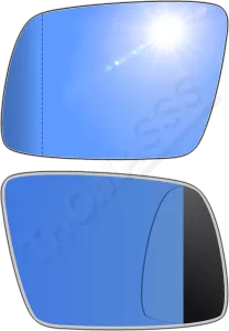 Niebieski (antyrefleksyjny)Powłoka w niebieskim odcieniu pomaga tłumić odbicia światła, zwłaszcza w nocy, co zapobiega oślepianiu kierowcy przez światła samochodów jadących z tyłu. Takie rozwiązanie działa podobnie jak lusterka FOTOCHROMATYCZNE i ELEKTROCHROMATYCZNE, ale w bardziej pasywny sposób i są od takich lusterek znacznie tańsze.W niektórych modelach, szczególnie w samochodach sportowych lub klasy wyższej, niebieska tonacja była stosowana, by nadać pojazdowi nowoczesny i prestiżowy wygląd.