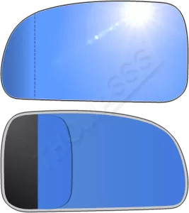 Niebieski (antyrefleksyjny)Powłoka w niebieskim odcieniu pomaga tłumić odbicia światła, zwłaszcza w nocy, co zapobiega oślepianiu kierowcy przez światła samochodów jadących z tyłu. Takie rozwiązanie działa podobnie jak lusterka FOTOCHROMATYCZNE i ELEKTROCHROMATYCZNE, ale w bardziej pasywny sposób i są od takich lusterek znacznie tańsze.W niektórych modelach, szczególnie w samochodach sportowych lub klasy wyższej, niebieska tonacja była stosowana, by nadać pojazdowi nowoczesny i prestiżowy wygląd.