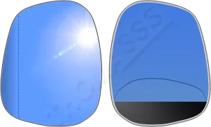 Niebieski (antyrefleksyjny)Powłoka w niebieskim odcieniu pomaga tłumić odbicia światła, zwłaszcza w nocy, co zapobiega oślepianiu kierowcy przez światła samochodów jadących z tyłu. Takie rozwiązanie działa podobnie jak lusterka FOTOCHROMATYCZNE i ELEKTROCHROMATYCZNE, ale w bardziej pasywny sposób i są od takich lusterek znacznie tańsze.W niektórych modelach, szczególnie w samochodach sportowych lub klasy wyższej, niebieska tonacja była stosowana, by nadać pojazdowi nowoczesny i prestiżowy wygląd.