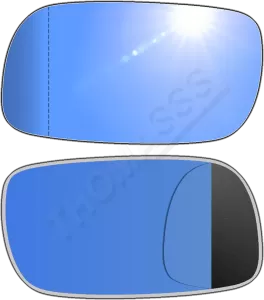 Niebieski (antyrefleksyjny)Powłoka w niebieskim odcieniu pomaga tłumić odbicia światła, zwłaszcza w nocy, co zapobiega oślepianiu kierowcy przez światła samochodów jadących z tyłu. Takie rozwiązanie działa podobnie jak lusterka FOTOCHROMATYCZNE i ELEKTROCHROMATYCZNE, ale w bardziej pasywny sposób i są od takich lusterek znacznie tańsze.W niektórych modelach, szczególnie w samochodach sportowych lub klasy wyższej, niebieska tonacja była stosowana, by nadać pojazdowi nowoczesny i prestiżowy wygląd.