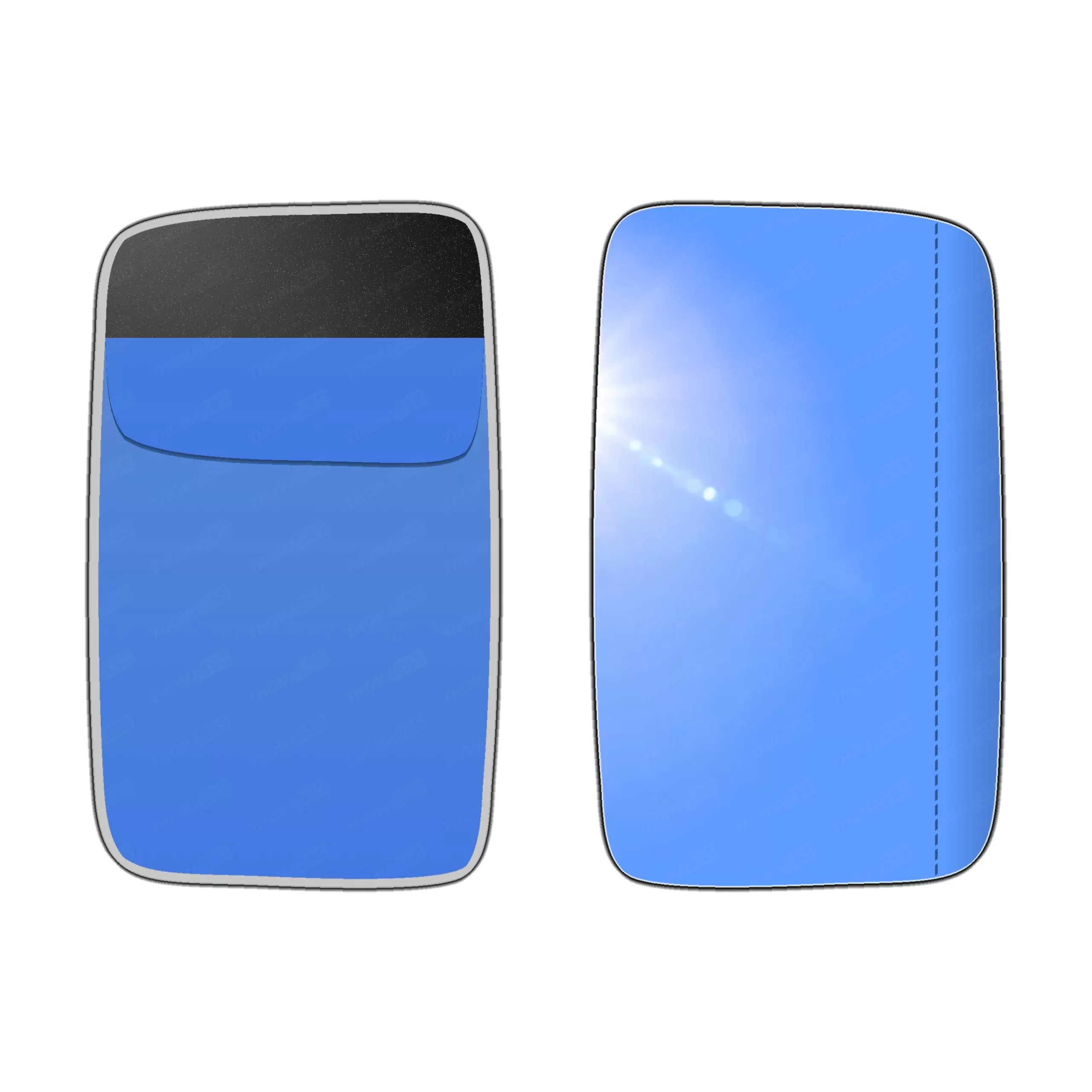 Niebieski (antyrefleksyjny)Powłoka w niebieskim odcieniu pomaga tłumić odbicia światła, zwłaszcza w nocy, co zapobiega oślepianiu kierowcy przez światła samochodów jadących z tyłu. Takie rozwiązanie działa podobnie jak lusterka FOTOCHROMATYCZNE i ELEKTROCHROMATYCZNE, ale w bardziej pasywny sposób i są od takich lusterek znacznie tańsze.W niektórych modelach, szczególnie w samochodach sportowych lub klasy wyższej, niebieska tonacja była stosowana, by nadać pojazdowi nowoczesny i prestiżowy wygląd.
