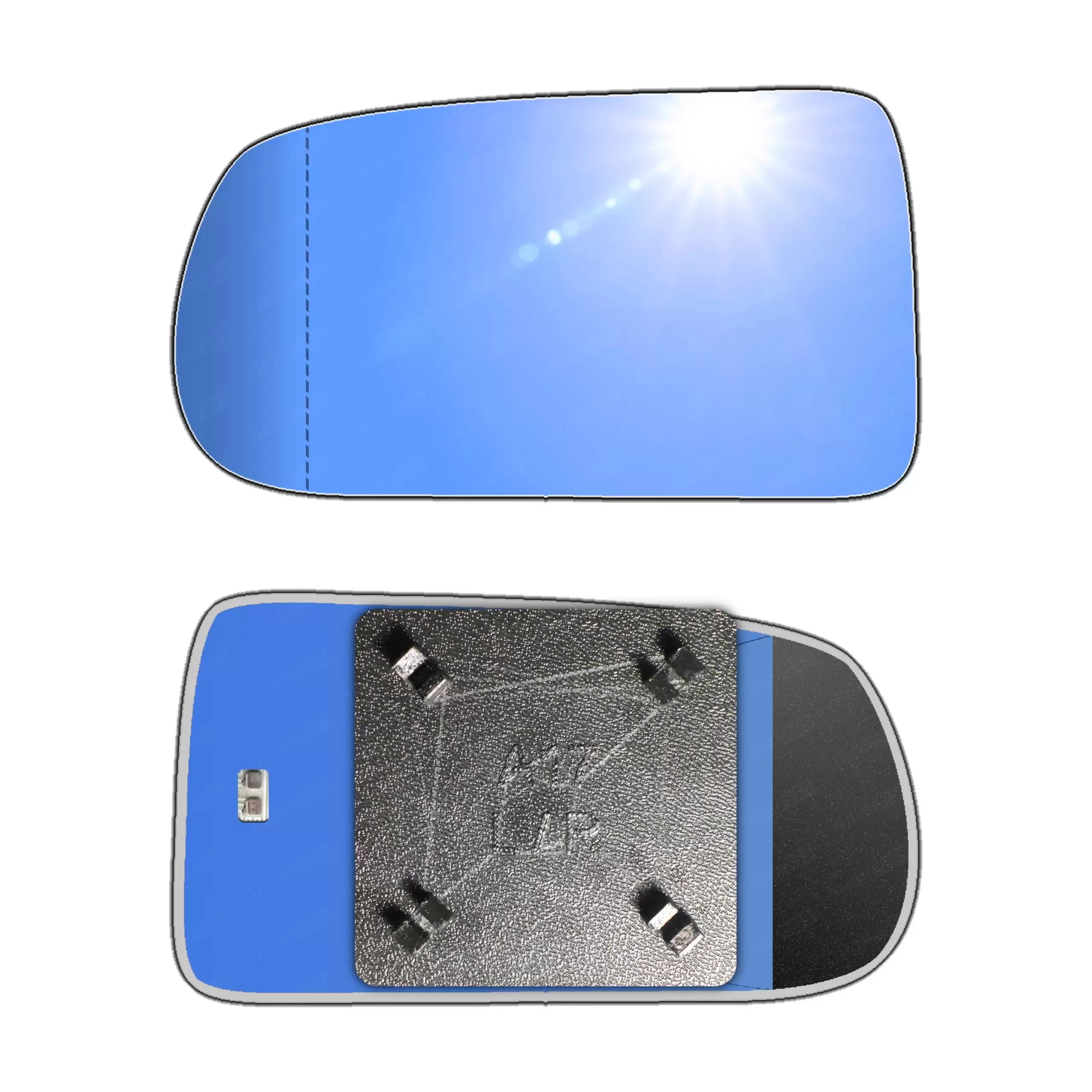 Antyrefleksyjny lewy ogrzewany wkład asferyczny lusterka - z plastikiem montażowym typu A17 i niebieskim oddalającym szkłem z grzałką [#234] do zastosowaniaw Mazda Millenia