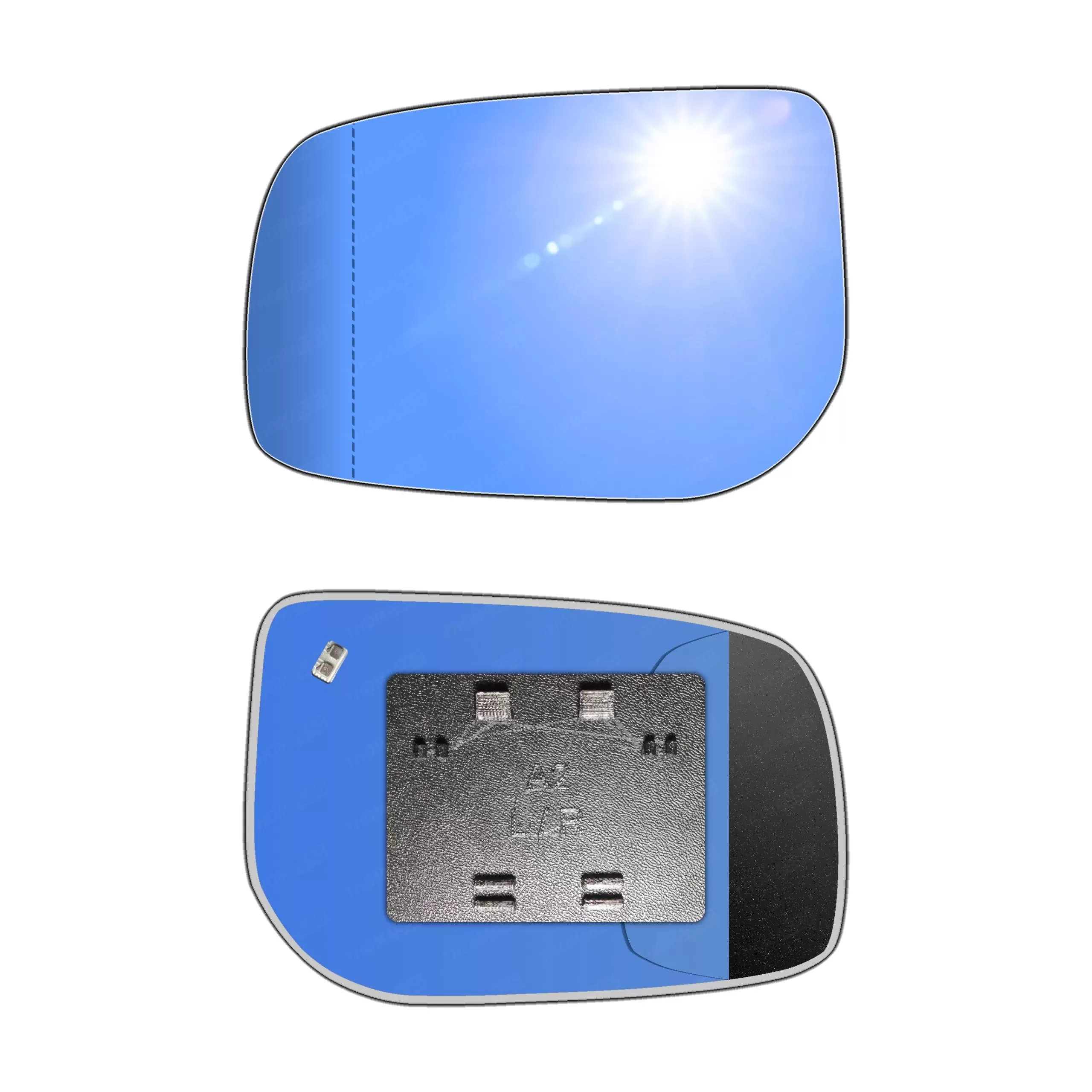 Antyrefleksyjny lewy ogrzewany wkład asferyczny lusterka - z plastikiem montażowym typu A2 i niebieskim oddalającym szkłem z grzałką [#039] do zastosowaniaw Toyota Avensis Verso