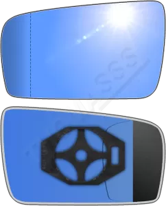 Niebieski (antyrefleksyjny)Powłoka w niebieskim odcieniu pomaga tłumić odbicia światła, zwłaszcza w nocy, co zapobiega oślepianiu kierowcy przez światła samochodów jadących z tyłu. Takie rozwiązanie działa podobnie jak lusterka FOTOCHROMATYCZNE i ELEKTROCHROMATYCZNE, ale w bardziej pasywny sposób i są od takich lusterek znacznie tańsze.W niektórych modelach, szczególnie w samochodach sportowych lub klasy wyższej, niebieska tonacja była stosowana, by nadać pojazdowi nowoczesny i prestiżowy wygląd.