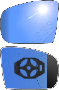 Antyrefleksyjny niebieski lewy wkład asferyczny lusterka - z plastikiem montażowym typu E0 i niebieskim oddalającym szkłem [#079] do zastosowaniaw Mercedes-Benz X163 [klasa GL]