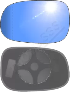 Antyrefleksyjny niebieski lewy wkład asferyczny lusterka - z plastikiem montażowym typu E0 i niebieskim oddalającym szkłem [#092] do zastosowaniaw Volvo S80 II