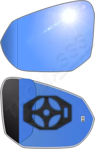 Niebieski (antyrefleksyjny)Powłoka w niebieskim odcieniu pomaga tłumić odbicia światła, zwłaszcza w nocy, co zapobiega oślepianiu kierowcy przez światła samochodów jadących z tyłu. Takie rozwiązanie działa podobnie jak lusterka FOTOCHROMATYCZNE i ELEKTROCHROMATYCZNE, ale w bardziej pasywny sposób i są od takich lusterek znacznie tańsze.W niektórych modelach, szczególnie w samochodach sportowych lub klasy wyższej, niebieska tonacja była stosowana, by nadać pojazdowi nowoczesny i prestiżowy wygląd.
