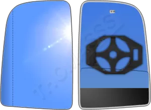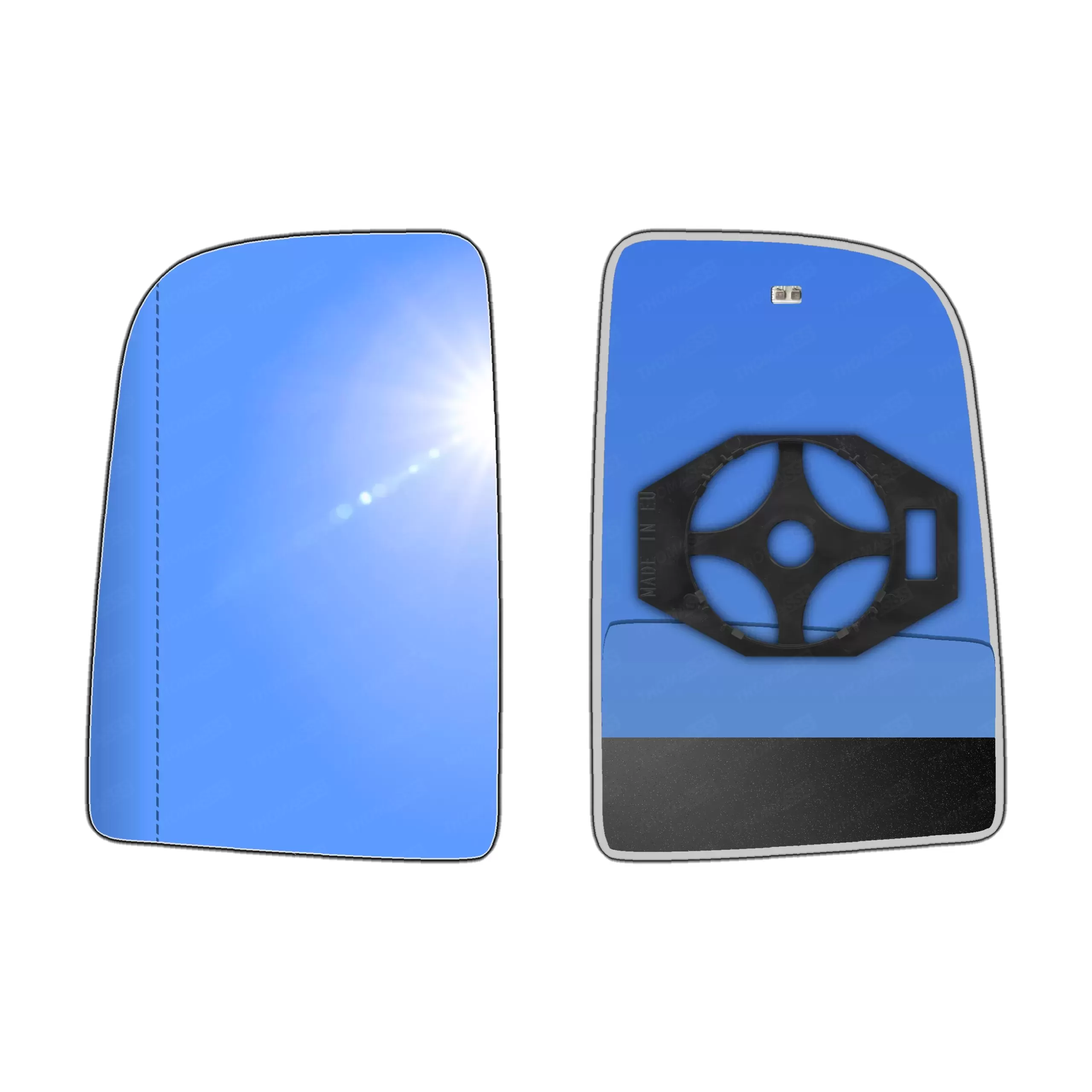 Antyrefleksyjny lewy ogrzewany wkład asferyczny lusterka - z plastikiem montażowym typu E0 i niebieskim oddalającym szkłem z grzałką [#104] do zastosowaniaw German E-Cars Plantos