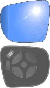 Antyrefleksyjny lewy ogrzewany wkład asferyczny lusterka - z plastikiem montażowym typu E0 i niebieskim oddalającym szkłem z grzałką [#554] do zastosowaniaw Hyundai Equus 2 [VI]