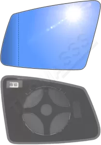 Antyrefleksyjny lewy ogrzewany wkład asferyczny lusterka - z plastikiem montażowym typu E0 i niebieskim oddalającym szkłem z grzałką [#541] do zastosowaniaw Mercedes-Benz W204 [klasa C]