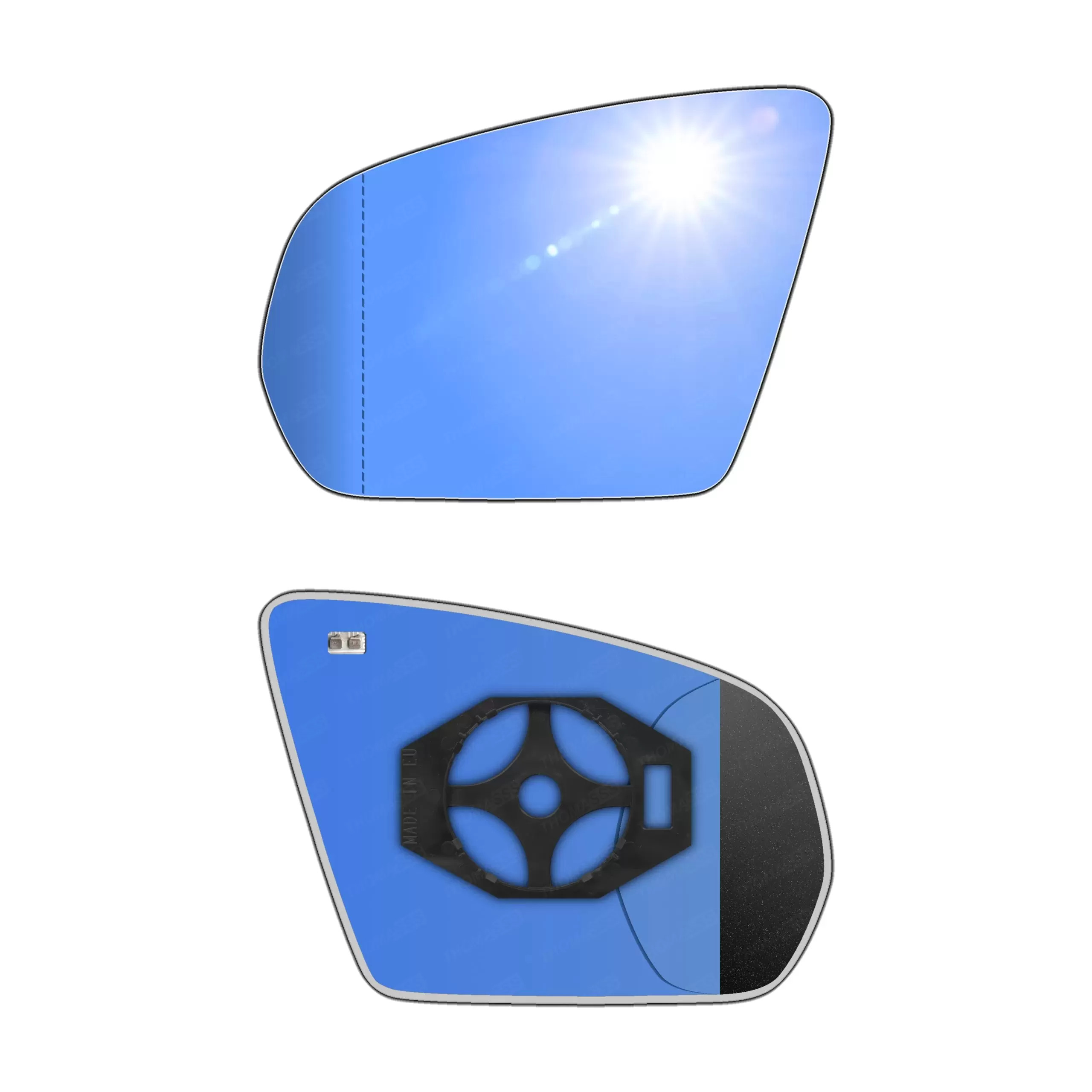 Antyrefleksyjny lewy ogrzewany wkład asferyczny lusterka - z plastikiem montażowym typu E0 i niebieskim oddalającym szkłem z grzałką [#715] do zastosowaniaw Mercedes-Benz W205 [klasa C]