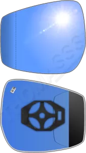 Antyrefleksyjny lewy ogrzewany wkład asferyczny lusterka - z plastikiem montażowym typu E0 i niebieskim oddalającym szkłem z grzałką [#707] do zastosowaniaw Nissan Almera [N17]