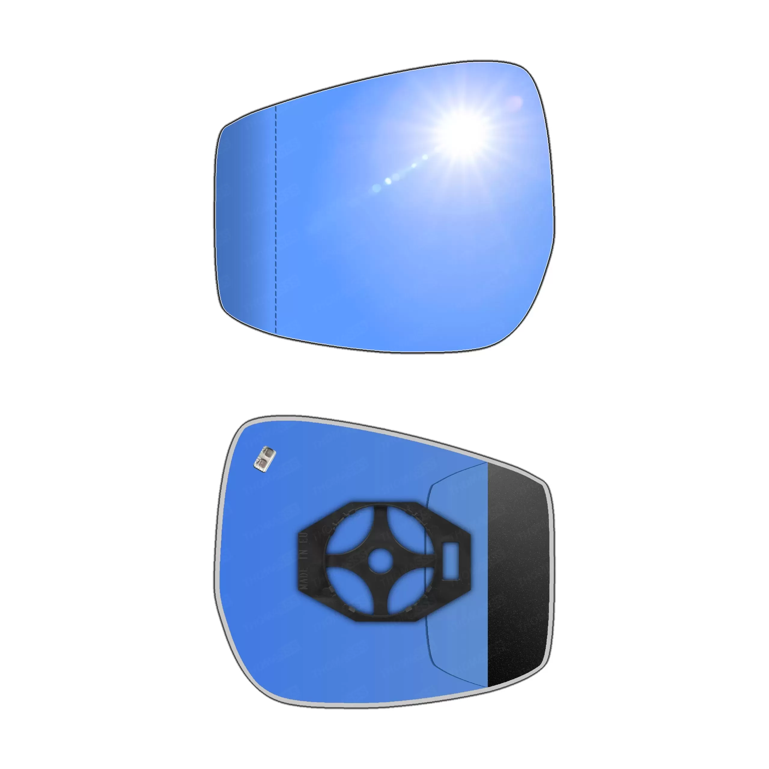 Antyrefleksyjny lewy ogrzewany wkład asferyczny lusterka - z plastikiem montażowym typu E0 i niebieskim oddalającym szkłem z grzałką [#707] do zastosowaniaw Nissan Note II [E12]