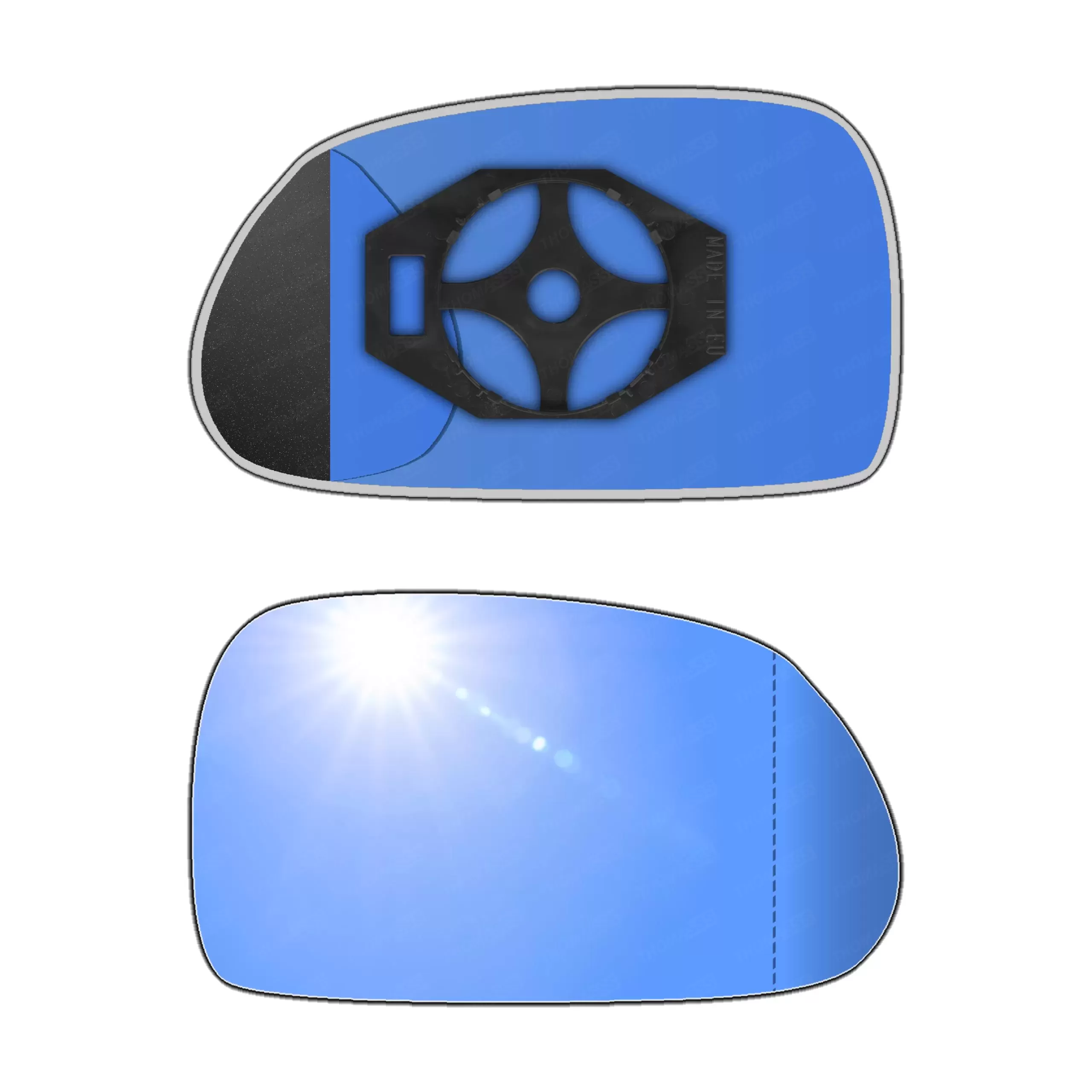 Niebieski (antyrefleksyjny)Powłoka w niebieskim odcieniu pomaga tłumić odbicia światła, zwłaszcza w nocy, co zapobiega oślepianiu kierowcy przez światła samochodów jadących z tyłu. Takie rozwiązanie działa podobnie jak lusterka FOTOCHROMATYCZNE i ELEKTROCHROMATYCZNE, ale w bardziej pasywny sposób i są od takich lusterek znacznie tańsze.W niektórych modelach, szczególnie w samochodach sportowych lub klasy wyższej, niebieska tonacja była stosowana, by nadać pojazdowi nowoczesny i prestiżowy wygląd.