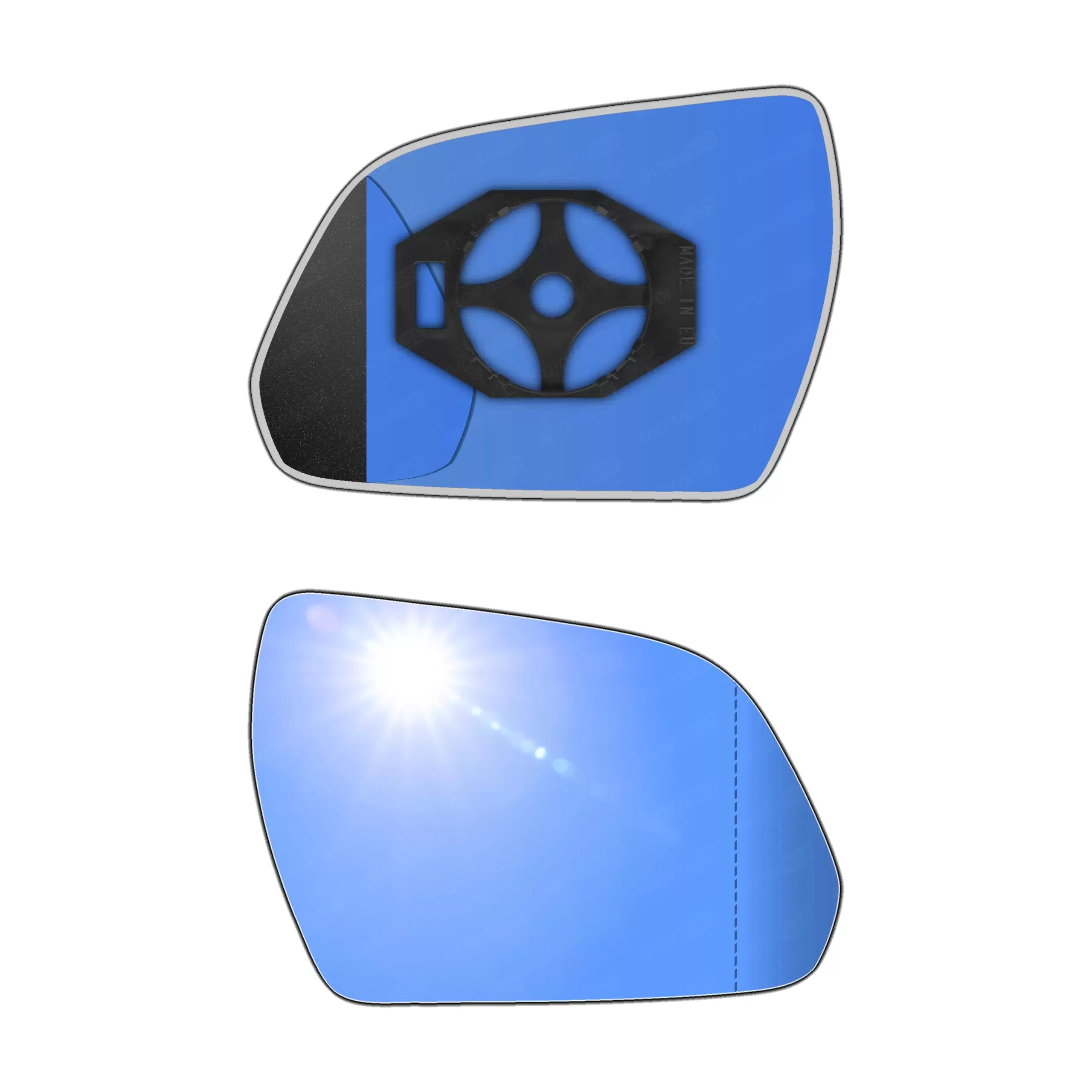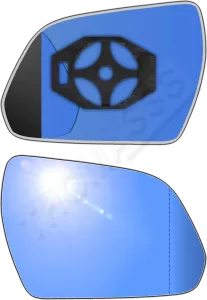 Niebieski (antyrefleksyjny)Powłoka w niebieskim odcieniu pomaga tłumić odbicia światła, zwłaszcza w nocy, co zapobiega oślepianiu kierowcy przez światła samochodów jadących z tyłu. Takie rozwiązanie działa podobnie jak lusterka FOTOCHROMATYCZNE i ELEKTROCHROMATYCZNE, ale w bardziej pasywny sposób i są od takich lusterek znacznie tańsze.W niektórych modelach, szczególnie w samochodach sportowych lub klasy wyższej, niebieska tonacja była stosowana, by nadać pojazdowi nowoczesny i prestiżowy wygląd.