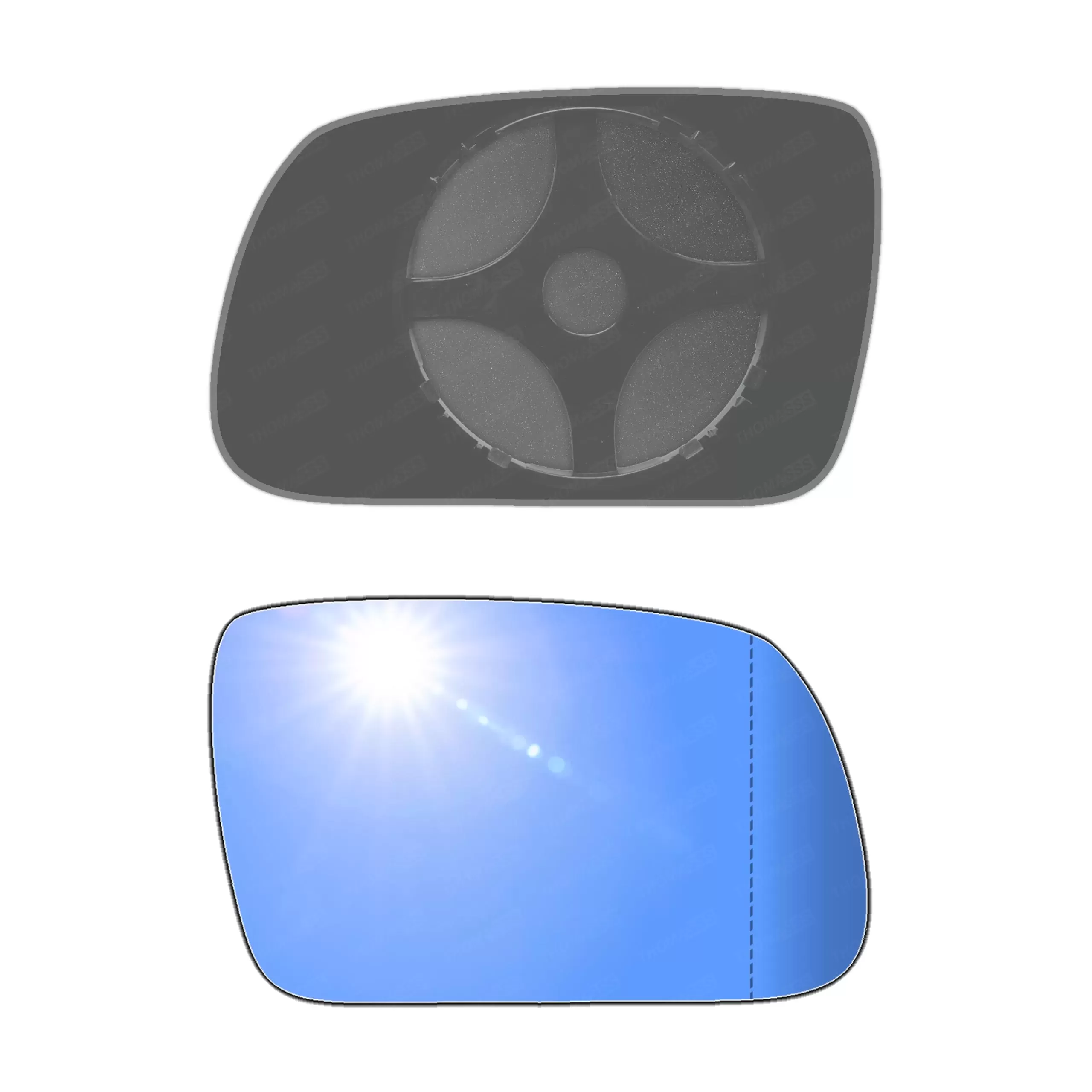 Antyrefleksyjny niebieski prawy wkład asferyczny lusterka - z plastikiem montażowym typu E0 i niebieskim oddalającym szkłem [#197] do zastosowania w Peugeot 407
