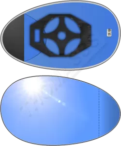 Niebieski (antyrefleksyjny)Powłoka w niebieskim odcieniu pomaga tłumić odbicia światła, zwłaszcza w nocy, co zapobiega oślepianiu kierowcy przez światła samochodów jadących z tyłu. Takie rozwiązanie działa podobnie jak lusterka FOTOCHROMATYCZNE i ELEKTROCHROMATYCZNE, ale w bardziej pasywny sposób i są od takich lusterek znacznie tańsze.W niektórych modelach, szczególnie w samochodach sportowych lub klasy wyższej, niebieska tonacja była stosowana, by nadać pojazdowi nowoczesny i prestiżowy wygląd.