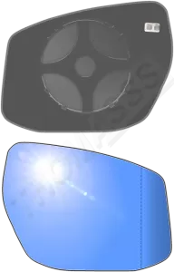 Antyrefleksyjny prawy ogrzewany wkład asferyczny lusterka - z plastikiem montażowym typu E0 i niebieskim oddalającym szkłem z grzałką [#844] do zastosowaniaw Nissan Tiida III [C13]