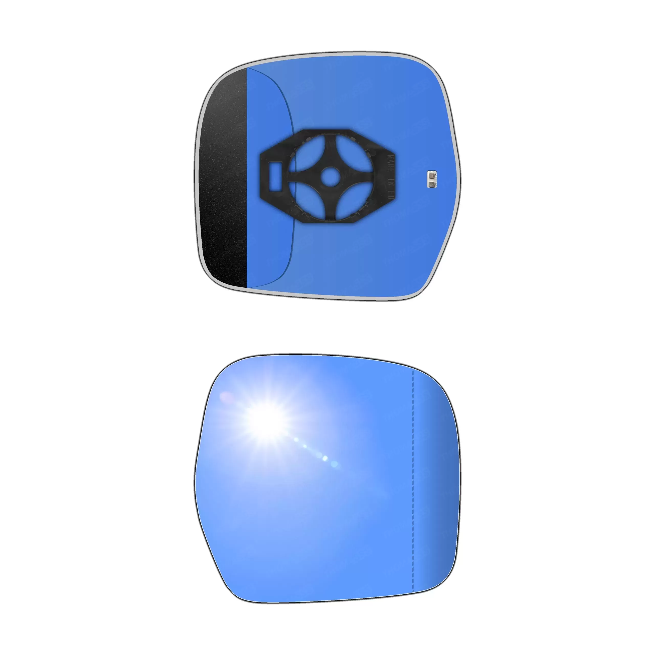 Antyrefleksyjny prawy ogrzewany wkład asferyczny lusterka - z plastikiem montażowym typu E0 i niebieskim oddalającym szkłem z grzałką [#1179] do zastosowaniaw Toyota Land Cruiser [J90 / J95]