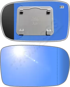 Antyrefleksyjny prawy ogrzewany wkład asferyczny lusterka - z plastikiem montażowym typu E59 i niebieskim oddalającym szkłem z grzałką [#428] do zastosowaniaw Lancia Flavia