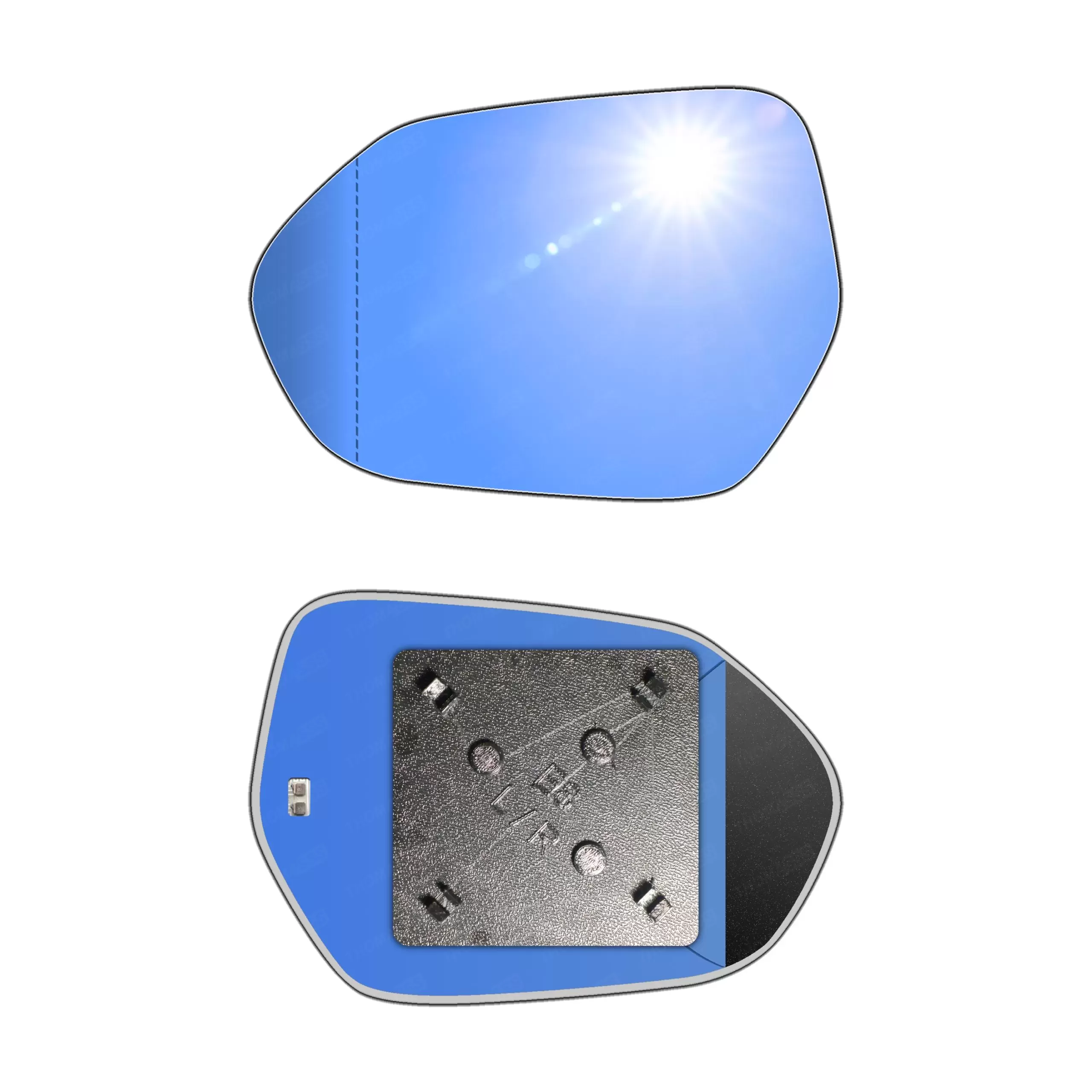 Antyrefleksyjny lewy ogrzewany wkład asferyczny lusterka - z plastikiem montażowym typu E8 i niebieskim oddalającym szkłem z grzałką [#833] do zastosowaniaw Suzuki Swace
