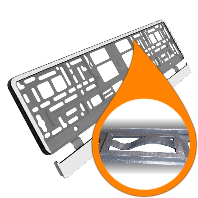 Polskiej produkcji najwyższej jakości ramka do montażu tablicy rejestracyjnej pojazdu posiadająca wszystkie wymagane atesty (numery atestów znajdują się na produkcie). Najwyższej jakości tworzywo jest bardzo elastyczne, niełamliwe podczas montażu, odporne na działanie warunków atmosferycznych.
