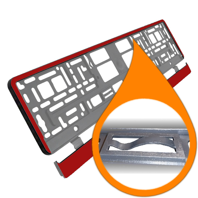Polskiej produkcji najwyższej jakości ramka do montażu tablicy rejestracyjnej pojazdu posiadająca wszystkie wymagane atesty (numery atestów znajdują się na produkcie). Najwyższej jakości tworzywo jest bardzo elastyczne, niełamliwe podczas montażu, odporne na działanie warunków atmosferycznych.