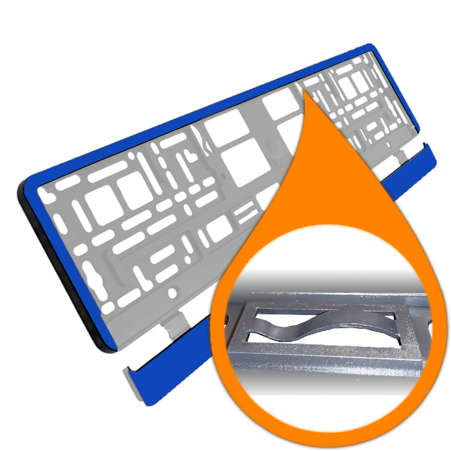 Polskiej produkcji najwyższej jakości ramka do montażu tablicy rejestracyjnej pojazdu posiadająca wszystkie wymagane atesty (numery atestów znajdują się na produkcie). Najwyższej jakości tworzywo jest bardzo elastyczne, niełamliwe podczas montażu, odporne na działanie warunków atmosferycznych. Ramka nie wymaga wiercenia dodatkowych otworów. Pasuje do jednorzędowych tablic rejestracyjnych obecnie stosowanych w większości krajów Unii Europejskiej (w tym m.in. w Polsce i w Niemczech). Bardzo łatwy montaż dzięki zastosowaniu dodatkowej listwy zatrzaskowej na spodzie ramki o szerokości 2cm, która sama w sobie wygląda bardzo estetycznie, a także umożliwia umieszczenie na niej dodatkowej reklamy (np. adresu strony internetowej Twojej firmy itp.).