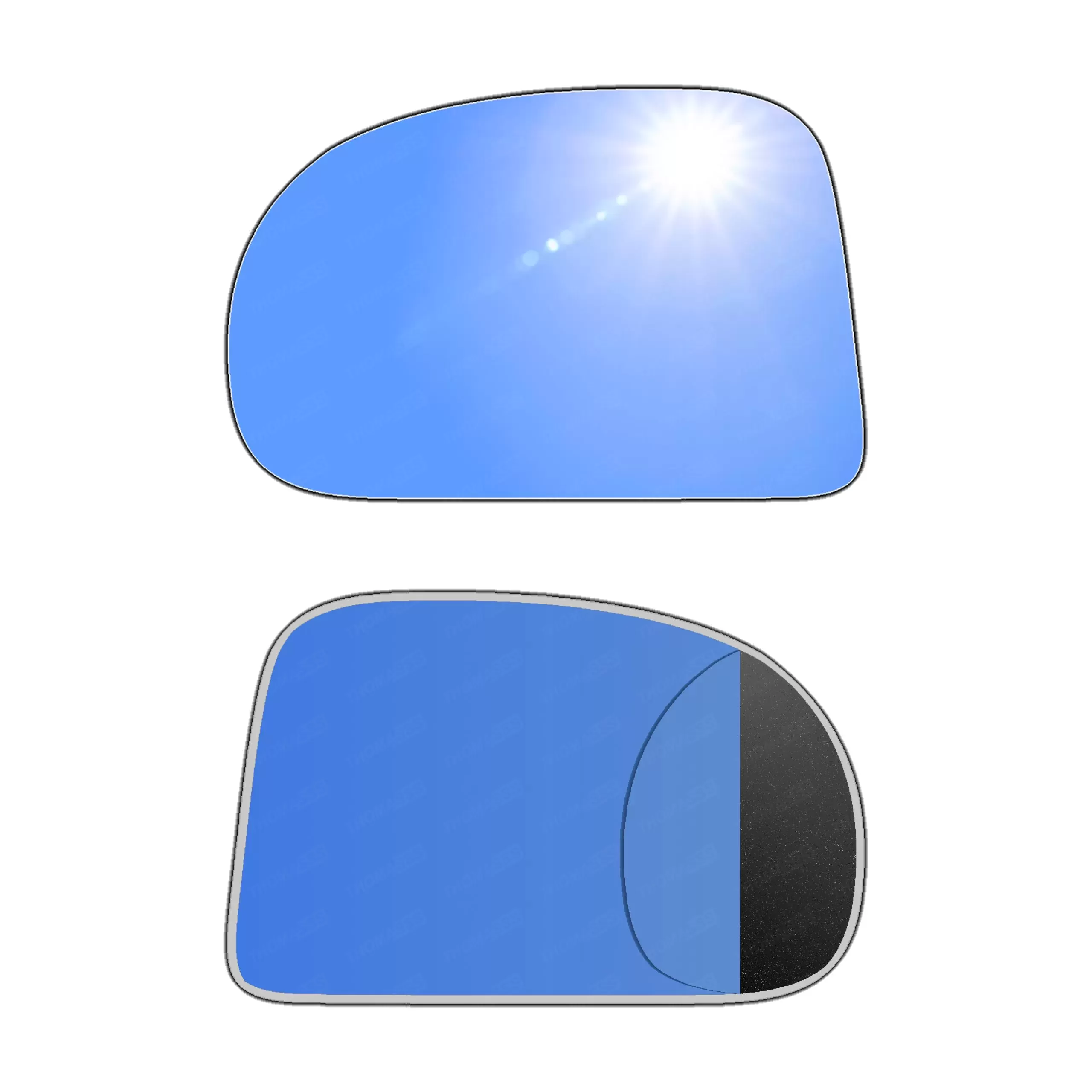 Niebieski (antyrefleksyjny)Powłoka w niebieskim odcieniu pomaga tłumić odbicia światła, zwłaszcza w nocy, co zapobiega oślepianiu kierowcy przez światła samochodów jadących z tyłu. Takie rozwiązanie działa podobnie jak lusterka FOTOCHROMATYCZNE i ELEKTROCHROMATYCZNE, ale w bardziej pasywny sposób i są od takich lusterek znacznie tańsze.W niektórych modelach, szczególnie w samochodach sportowych lub klasy wyższej, niebieska tonacja była stosowana, by nadać pojazdowi nowoczesny i prestiżowy wygląd.