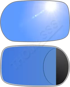 Niebieski (antyrefleksyjny)Powłoka w niebieskim odcieniu pomaga tłumić odbicia światła, zwłaszcza w nocy, co zapobiega oślepianiu kierowcy przez światła samochodów jadących z tyłu. Takie rozwiązanie działa podobnie jak lusterka FOTOCHROMATYCZNE i ELEKTROCHROMATYCZNE, ale w bardziej pasywny sposób i są od takich lusterek znacznie tańsze.W niektórych modelach, szczególnie w samochodach sportowych lub klasy wyższej, niebieska tonacja była stosowana, by nadać pojazdowi nowoczesny i prestiżowy wygląd.