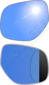 Niebieski (antyrefleksyjny)Powłoka w niebieskim odcieniu pomaga tłumić odbicia światła, zwłaszcza w nocy, co zapobiega oślepianiu kierowcy przez światła samochodów jadących z tyłu. Takie rozwiązanie działa podobnie jak lusterka FOTOCHROMATYCZNE i ELEKTROCHROMATYCZNE, ale w bardziej pasywny sposób i są od takich lusterek znacznie tańsze.W niektórych modelach, szczególnie w samochodach sportowych lub klasy wyższej, niebieska tonacja była stosowana, by nadać pojazdowi nowoczesny i prestiżowy wygląd.