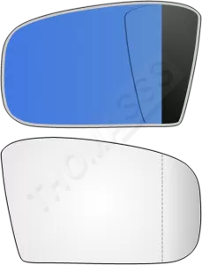 Prawe szkło asferyczne lusterka (oddalające) z klejem [#247] do zastosowania w Mercedes-Benz W220 [klasa S]