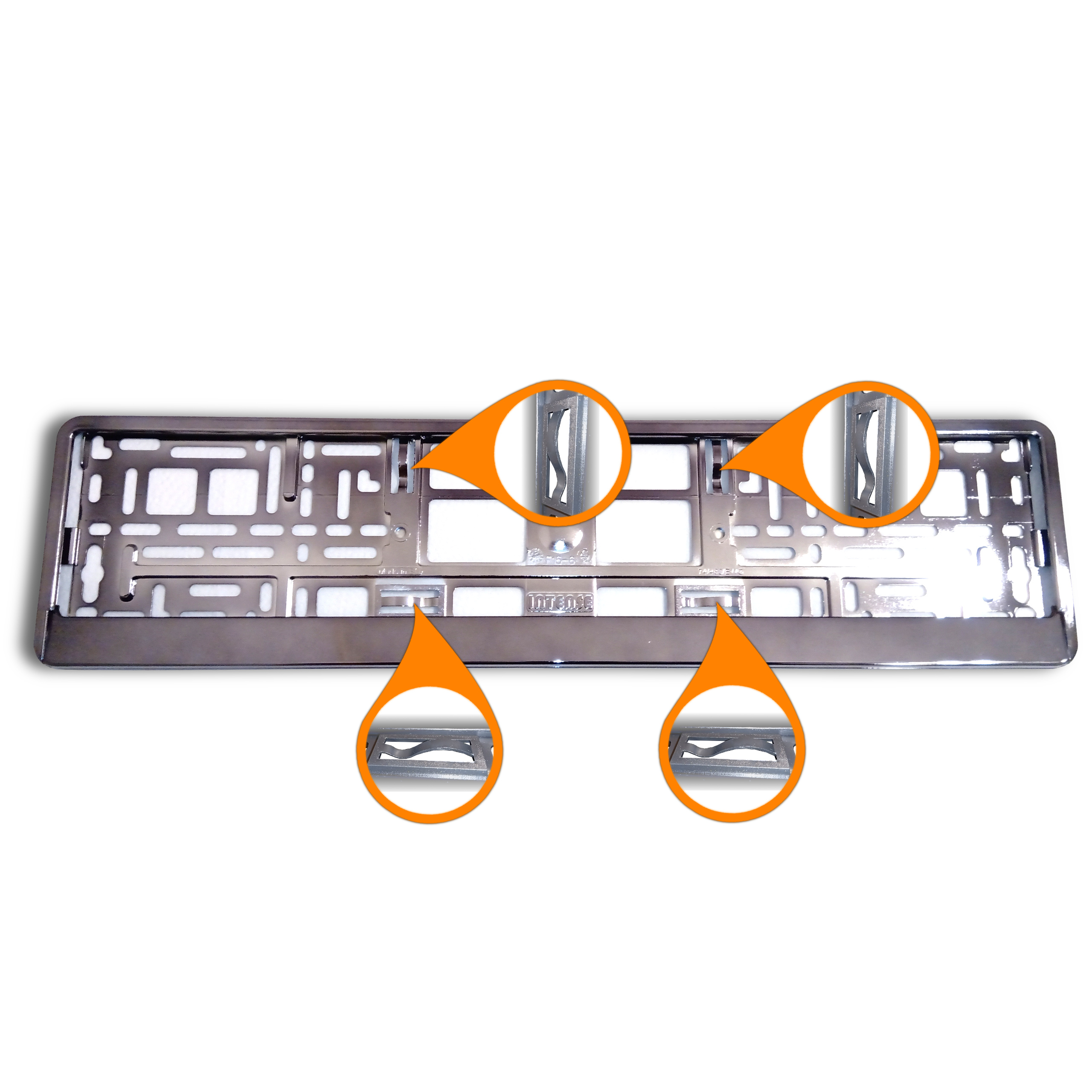 Ramka nie wymaga wiercenia dodatkowych otworów. Pasuje do jednorzędowych tablic rejestracyjnych obecnie stosowanych w większości krajów Unii Europejskiej (w tym m.in. w Polsce i w Niemczech).