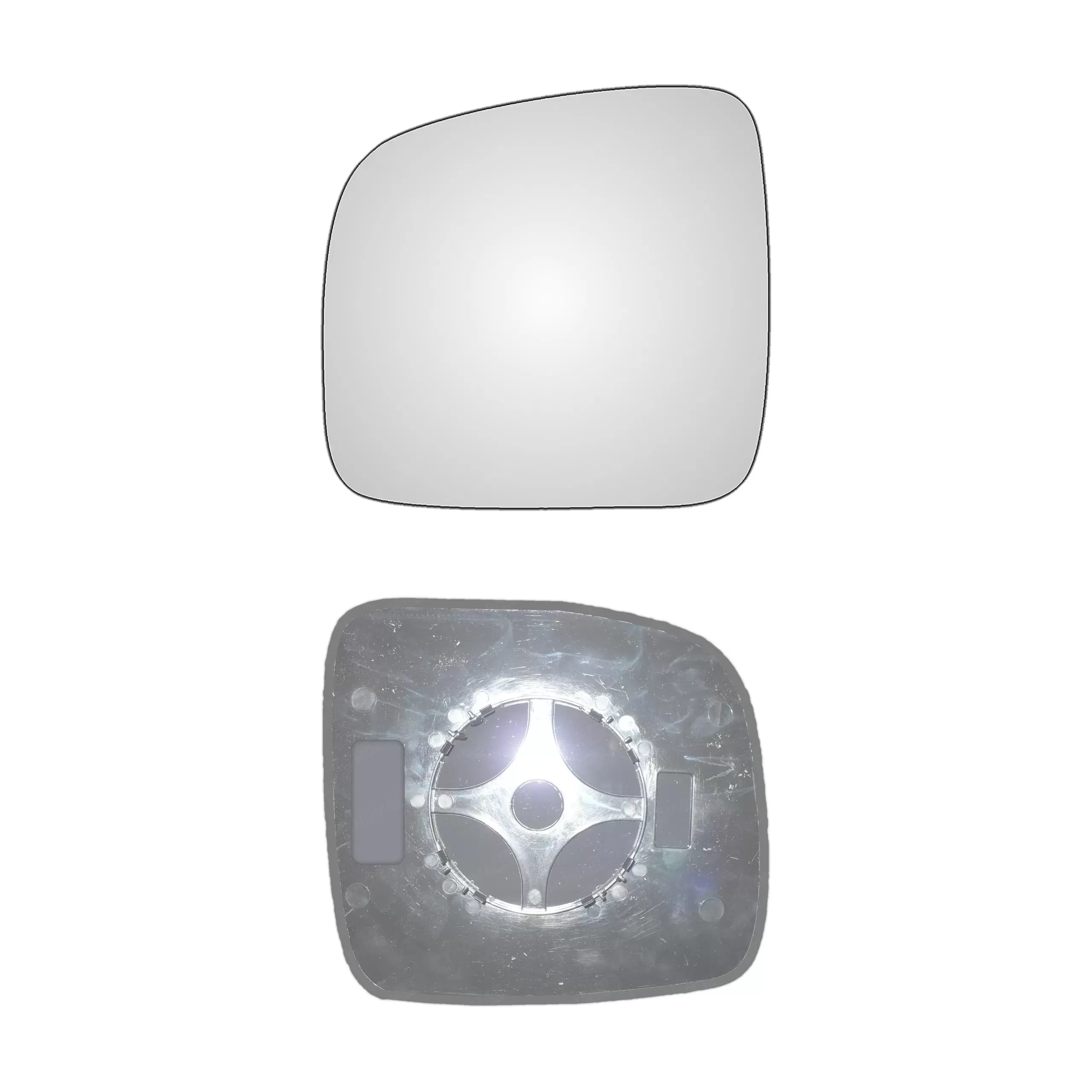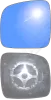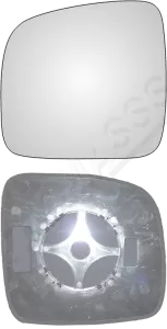 Lewy wkład sferyczny lusterka - z plastikiem montażowym typu E0 i oddalającym (bezbarwnym) szkłem [#949] do zastosowaniaw Volkswagen Transporter T5