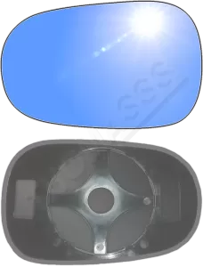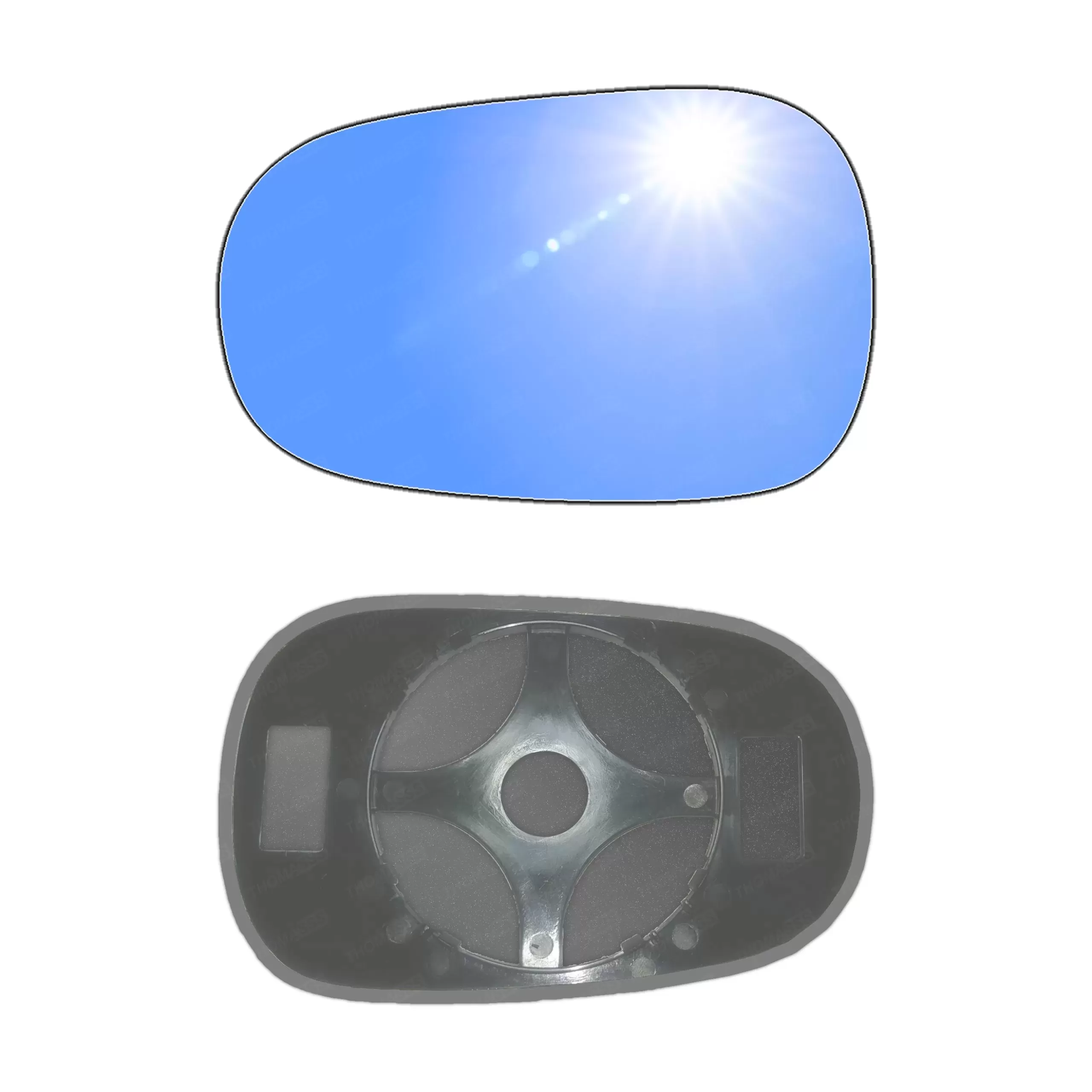 Antyrefleksyjny niebieski lewy wkład sferyczny lusterka - z plastikiem montażowym typu E0 i niebieskim oddalającym szkłem [#027] do zastosowaniaw Nissan Micra III [K12]
