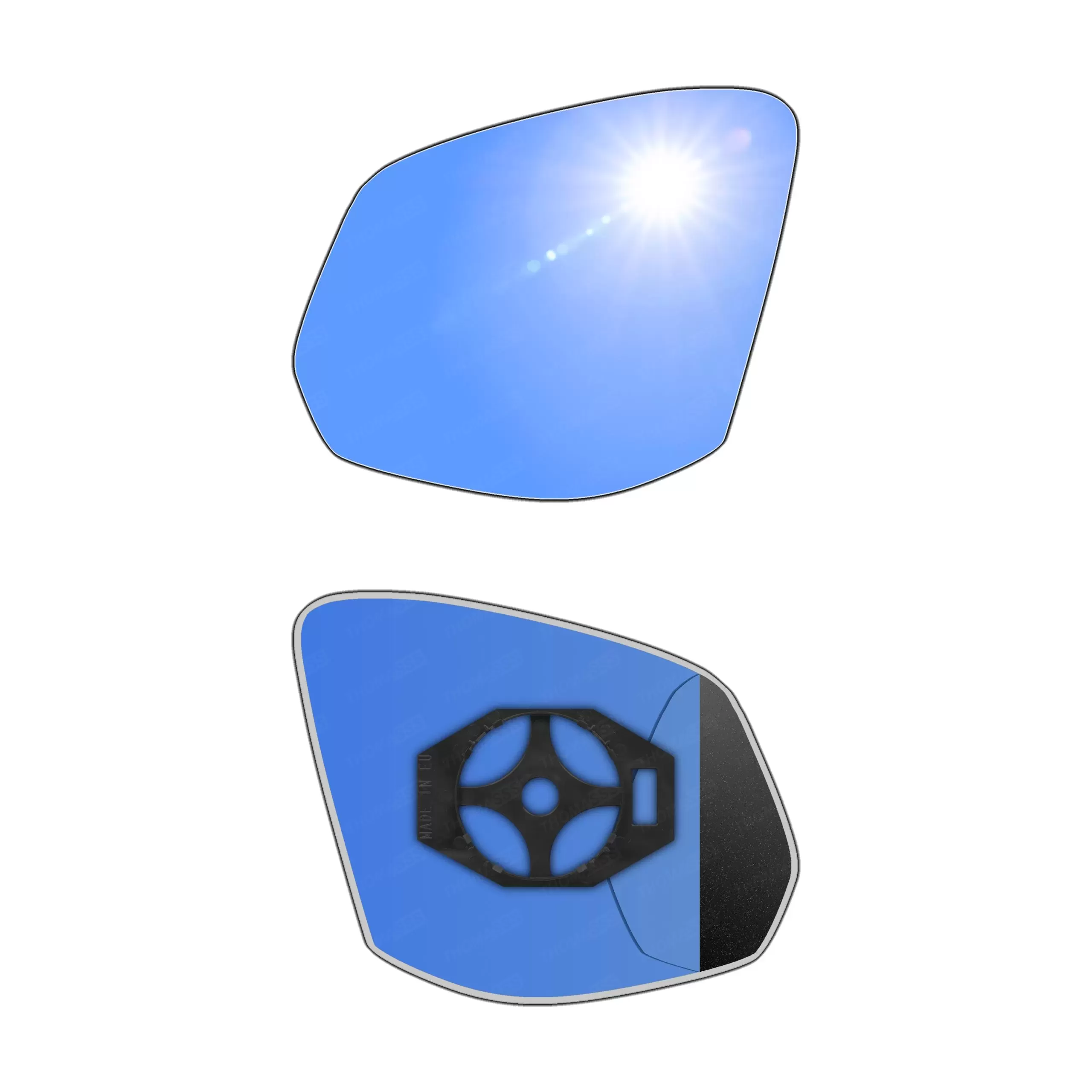 Niebieski (antyrefleksyjny)Powłoka w niebieskim odcieniu pomaga tłumić odbicia światła, zwłaszcza w nocy, co zapobiega oślepianiu kierowcy przez światła samochodów jadących z tyłu. Takie rozwiązanie działa podobnie jak lusterka FOTOCHROMATYCZNE i ELEKTROCHROMATYCZNE, ale w bardziej pasywny sposób i są od takich lusterek znacznie tańsze.W niektórych modelach, szczególnie w samochodach sportowych lub klasy wyższej, niebieska tonacja była stosowana, by nadać pojazdowi nowoczesny i prestiżowy wygląd.