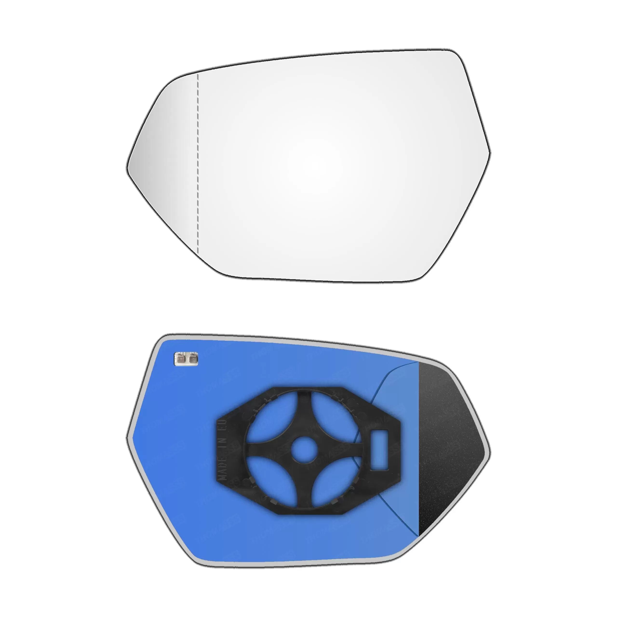 Lewy ogrzewany wkład asferyczny lusterka - z plastikiem montażowym typu E0 i oddalającym szkłem z grzałką [#1324] do zastosowania w Seat Leon IV