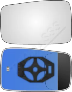 Lewy ogrzewany wkład sferyczny lusterka - z plastikiem montażowym typu E0 i oddalającym (bezbarwnym) szkłem z grzałką [#122] do zastosowaniaw Audi 90 [B3]