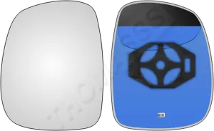 Lewy ogrzewany wkład sferyczny lusterka - z plastikiem montażowym typu E0 i oddalającym (bezbarwnym) szkłem z grzałką [#235] do zastosowaniaw Ssangyong Korando II