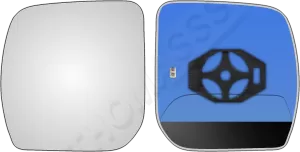 Lewy ogrzewany wkład sferyczny lusterka - z plastikiem montażowym typu E0 i oddalającym (bezbarwnym) szkłem z grzałką [#531] do zastosowaniaw Subaru Forester III [SH]