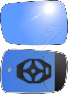 Antyrefleksyjny lewy ogrzewany wkład sferyczny lusterka - z plastikiem montażowym typu E0 i niebieskim oddalającym szkłem z grzałką [#096] do zastosowaniaw BMW Seria 7 [E67]