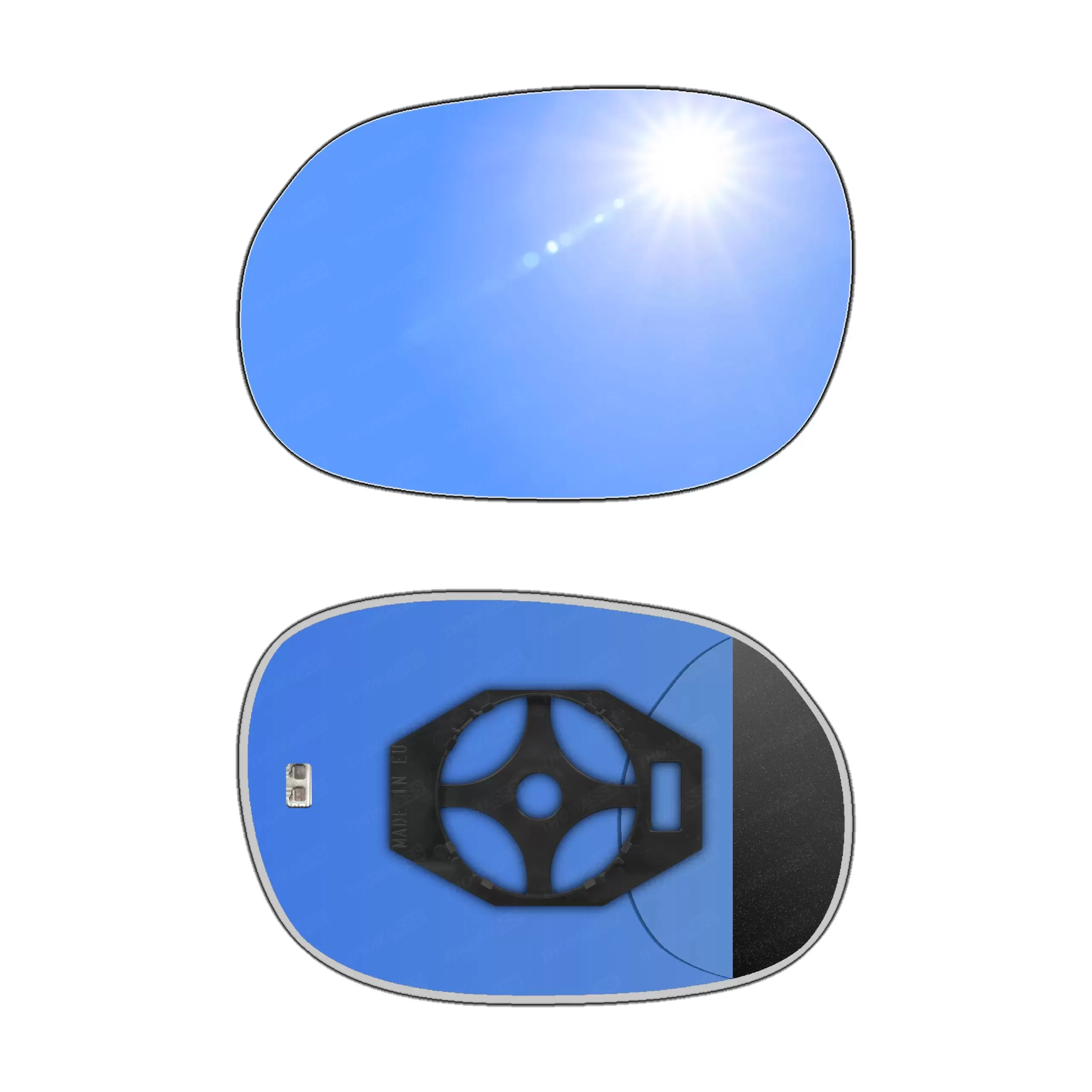 Antyrefleksyjny lewy ogrzewany wkład sferyczny lusterka - z plastikiem montażowym typu E0 i niebieskim oddalającym szkłem z grzałką [#447] do zastosowaniaw Chrysler 300M