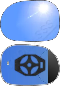 Antyrefleksyjny lewy ogrzewany wkład sferyczny lusterka - z plastikiem montażowym typu E0 i niebieskim oddalającym szkłem z grzałką [#080] do zastosowaniaw Mercedes-Benz X163 [klasa GL]