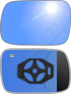 Niebieski (antyrefleksyjny)Powłoka w niebieskim odcieniu pomaga tłumić odbicia światła, zwłaszcza w nocy, co zapobiega oślepianiu kierowcy przez światła samochodów jadących z tyłu. Takie rozwiązanie działa podobnie jak lusterka FOTOCHROMATYCZNE i ELEKTROCHROMATYCZNE, ale w bardziej pasywny sposób i są od takich lusterek znacznie tańsze.W niektórych modelach, szczególnie w samochodach sportowych lub klasy wyższej, niebieska tonacja była stosowana, by nadać pojazdowi nowoczesny i prestiżowy wygląd.