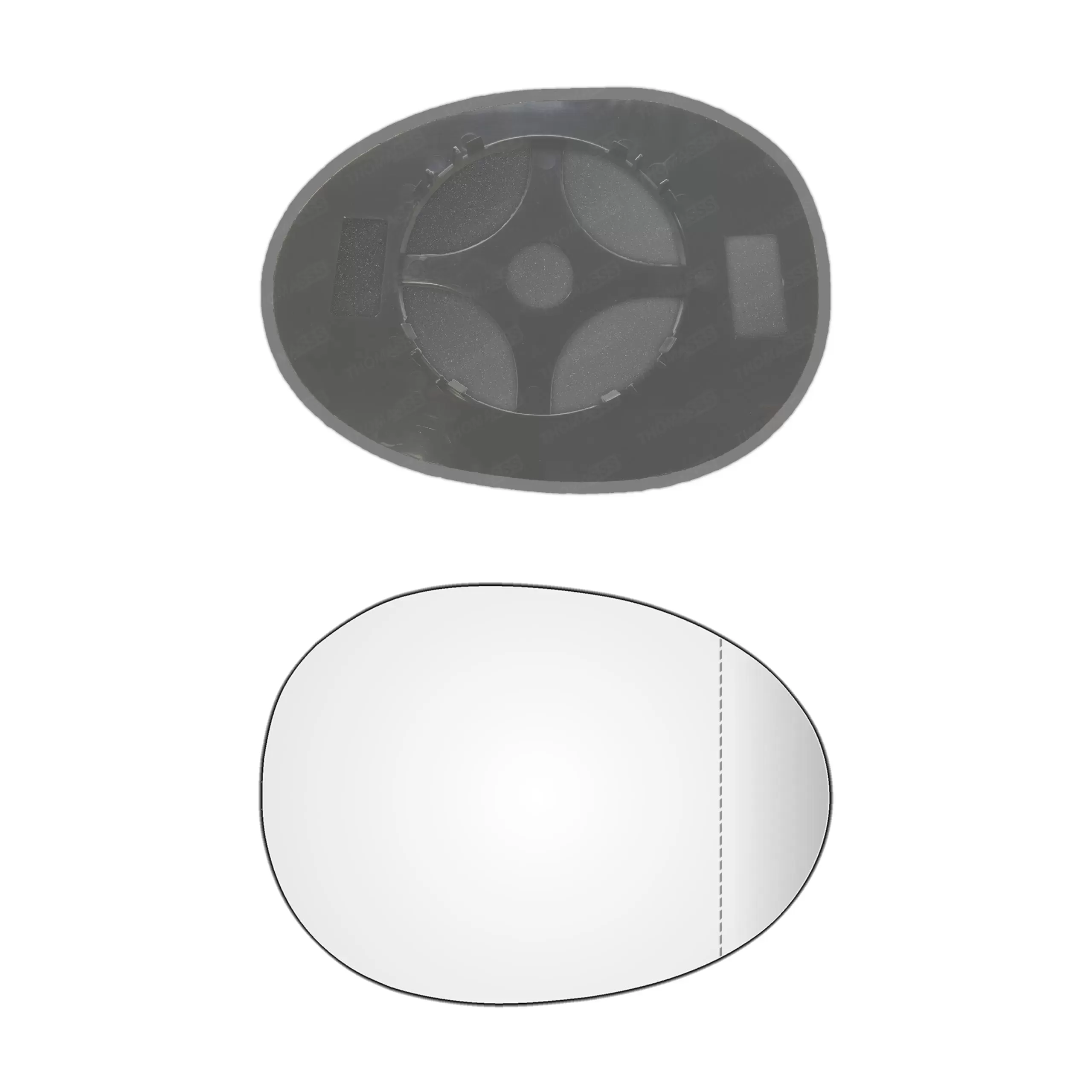 Prawy wkład asferyczny lusterka - z plastikiem montażowym typu E0 i oddalającym szkłem [#033] do zastosowania w Citroen C1 I
