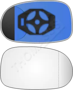 Prawy wkład asferyczny lusterka - z plastikiem montażowym typu E0 i oddalającym szkłem [#938] do zastosowania w Infiniti I30 [A33]