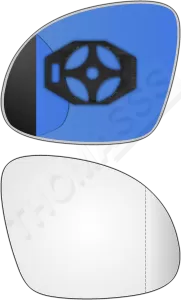 Prawy wkład asferyczny lusterka - z plastikiem montażowym typu E0 i oddalającym szkłem [#309] do zastosowania w Volkswagen Tiguan I