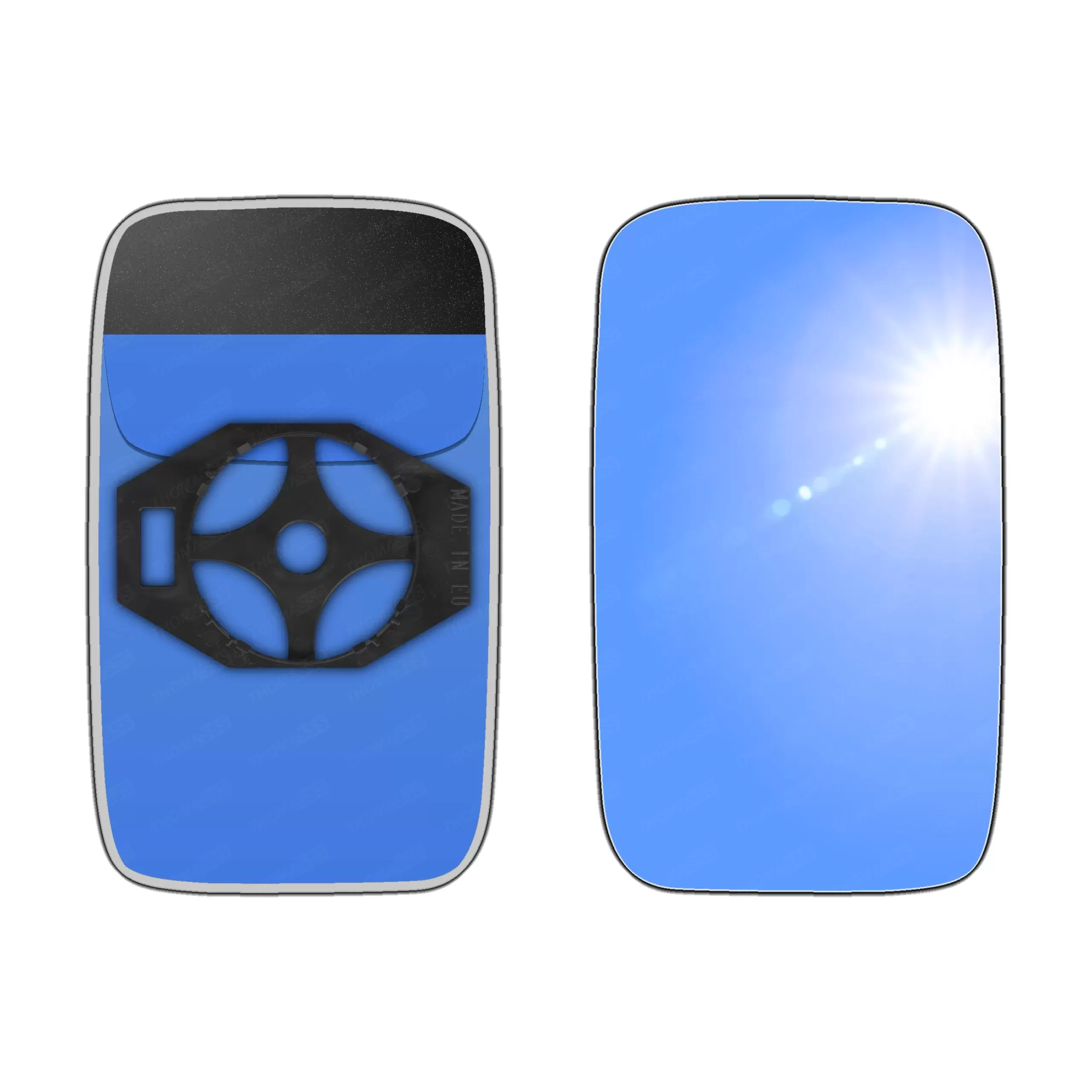 Antyrefleksyjny niebieski prawy wkład sferyczny lusterka - z plastikiem montażowym typu E0 i niebieskim oddalającym szkłem [#879] do zastosowania w Nissan Cabstar [F23]