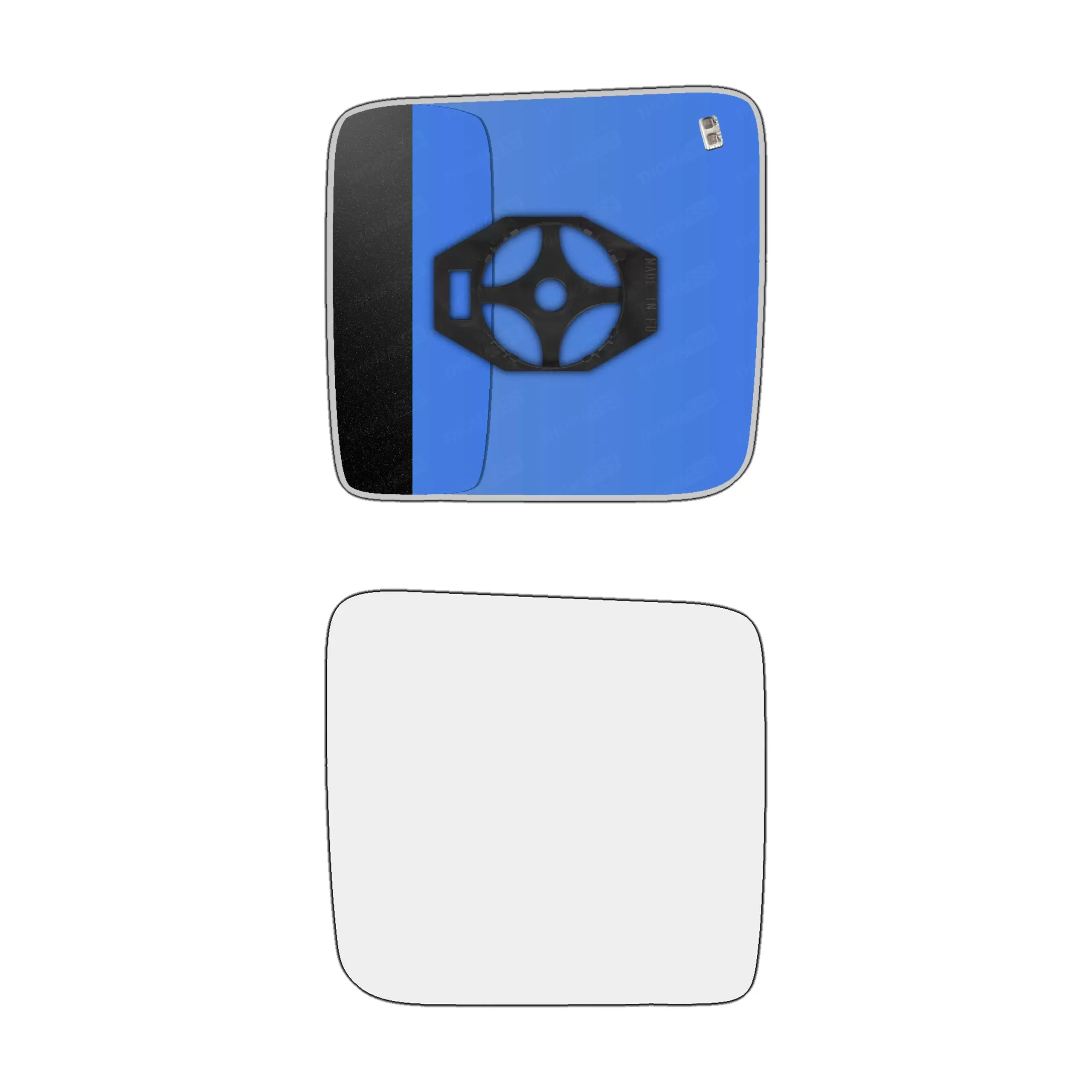 Prawy ogrzewany wkład lusterka - z plastikiem montażowym typu E0 i płaskim nieoddalającym szkłem z grzałką [#943] do zastosowania w Mercedes-Benz W124
