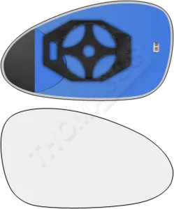 Prawy ogrzewany wkład lusterka - z plastikiem montażowym typu E0 i płaskim nieoddalającym szkłem z grzałką [#705] do zastosowaniaw Porsche Carrera 911 [997]